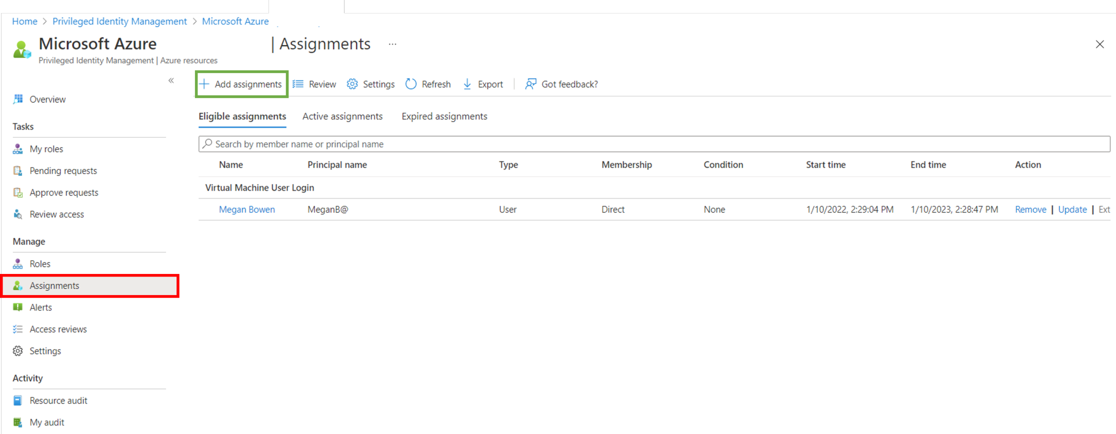 In the Azure Portal, open PIM, select Azure resources and your subscription.
