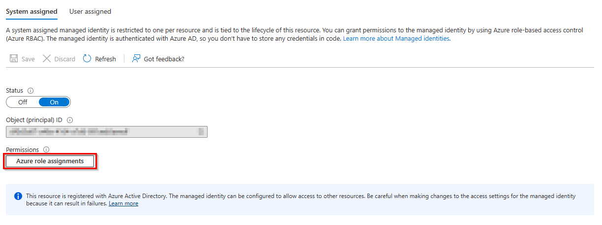 This registers the Azure function in Azure Active Directoy so that you can assign specific Azure permissions to this managed identity. Alternatively, you can use a user-assigned managed identity instead of a system-assigned one if you wish.