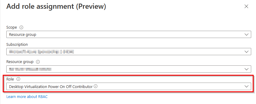 Meanwhile, there is a built-in permission role that allows you to start and deallocate virtual machines. You can use your custom role if you have one, otherwise select the Desktop Virtualization Power On Off Contributor role. The same role is also used for the scaling plan feature.