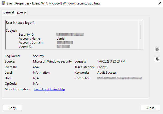 Event ID 4647 means that the user has initiated a logout, which can be achieved when the user clicks Sign out or the RDP connection disconnect timeout reaches its limit and logs the user out.