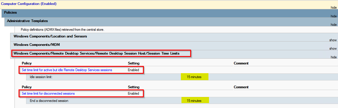 Note: These RDP timeout settings are available as computer and user settings.